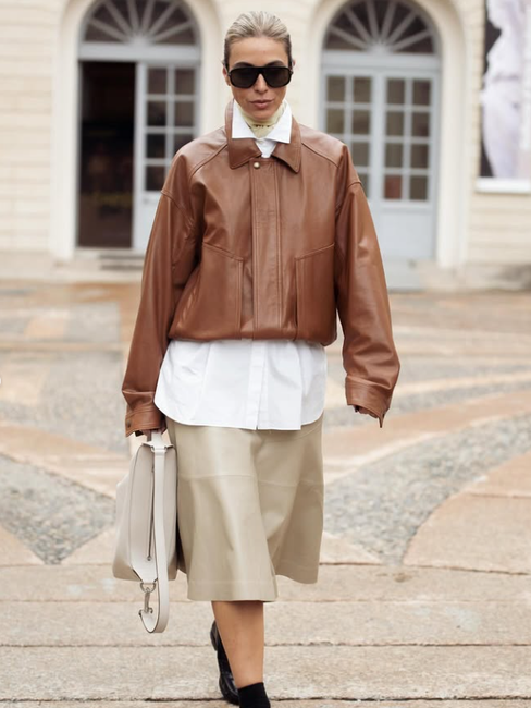打破季節與場景的邊界:襯衫就像一個溫柔的調解者。它能讓厚重的皮夾克與柔軟的針織衫「握手言和」,創造出暖感與設計感並存的視覺效果。